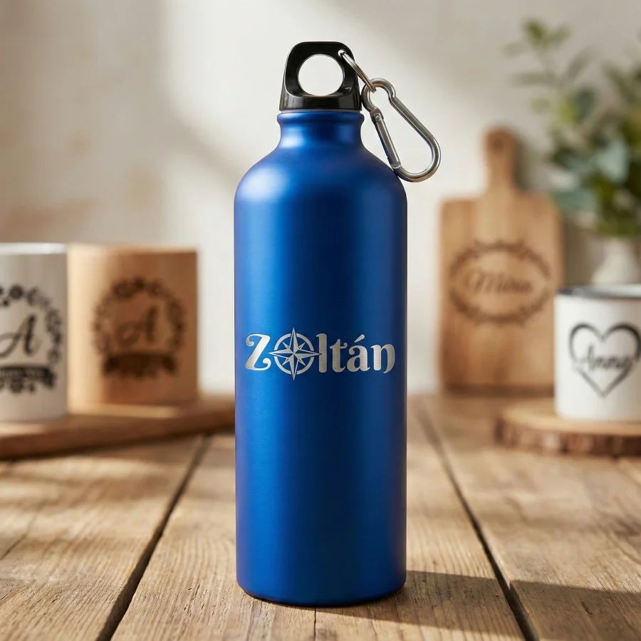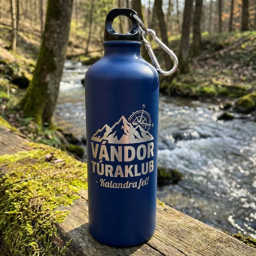 Miért válassza a lézergravírozást? A lézergravírozás során a fókuszált lézersugár finoman eltávolítja a kulacs kék külső bevonatát. Ennek eredményeként az Ön által kért minta (legyen az céglogó, név vagy egyedi üzenet) az alatta lévő fém ragyogó ezüst színében rajzolódik ki. Ez a technológia garantálja, hogy a felirat hajszálpontos, elegáns és – a nyomtatott mintákkal ellentétben – 100%-ban kopásálló és maradandó lesz.