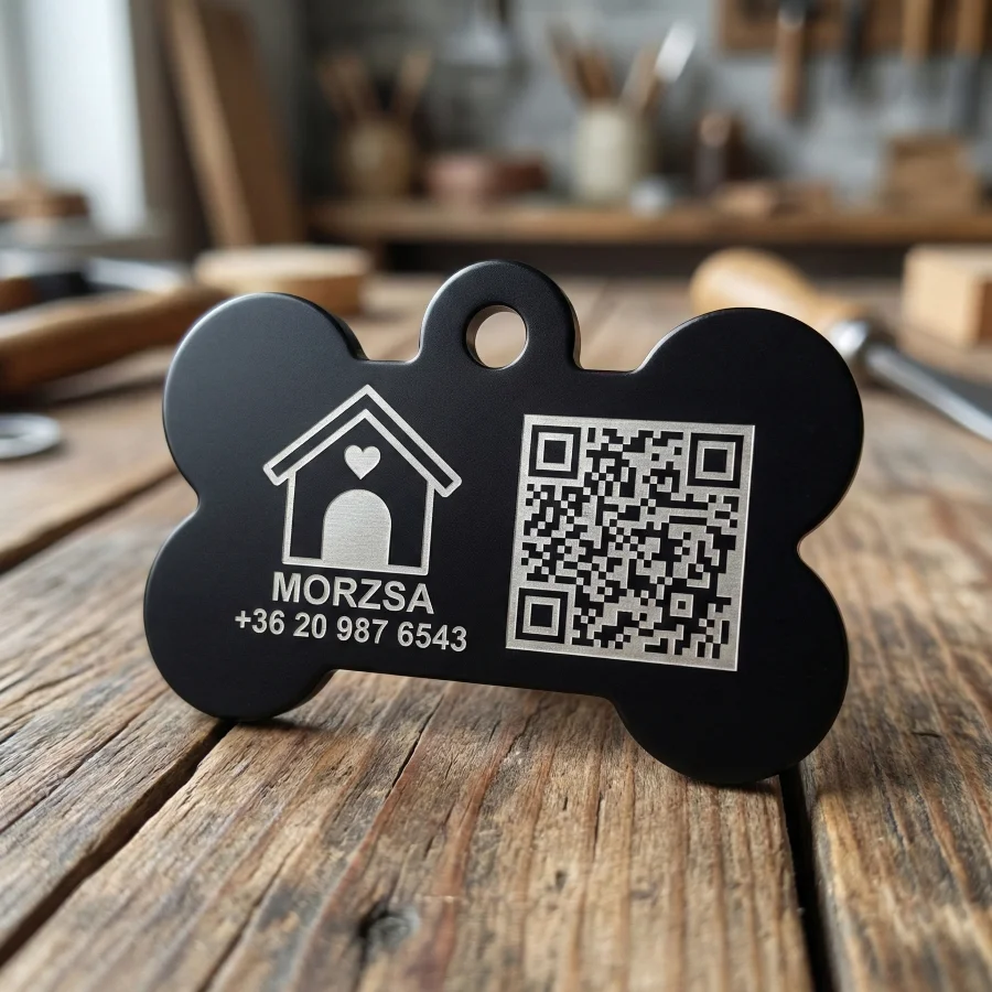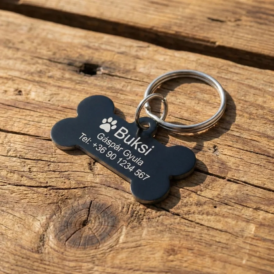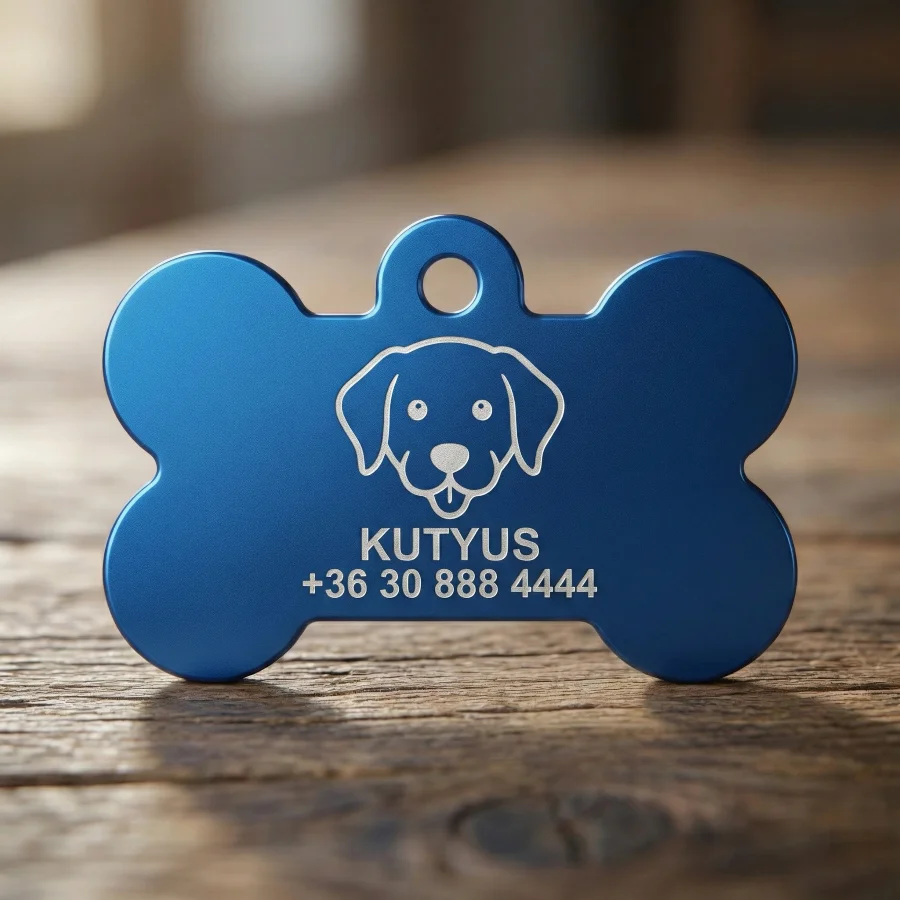 - Kétoldalas feliratozhatóság: Az előlapra kerülhet a kutya neve, míg a hátoldalon kényelmesen elfér a gazdi telefonszáma vagy akár a mikrochip azonosítója is.